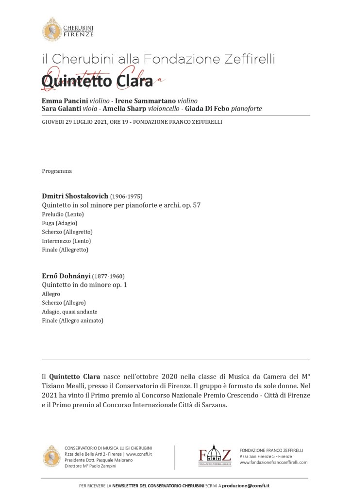 Emma Pancini, violin – Irene Sammartano, violin – Sara Galanti, viola – Amelia Sharp, cello – Giada Di Febo, piano